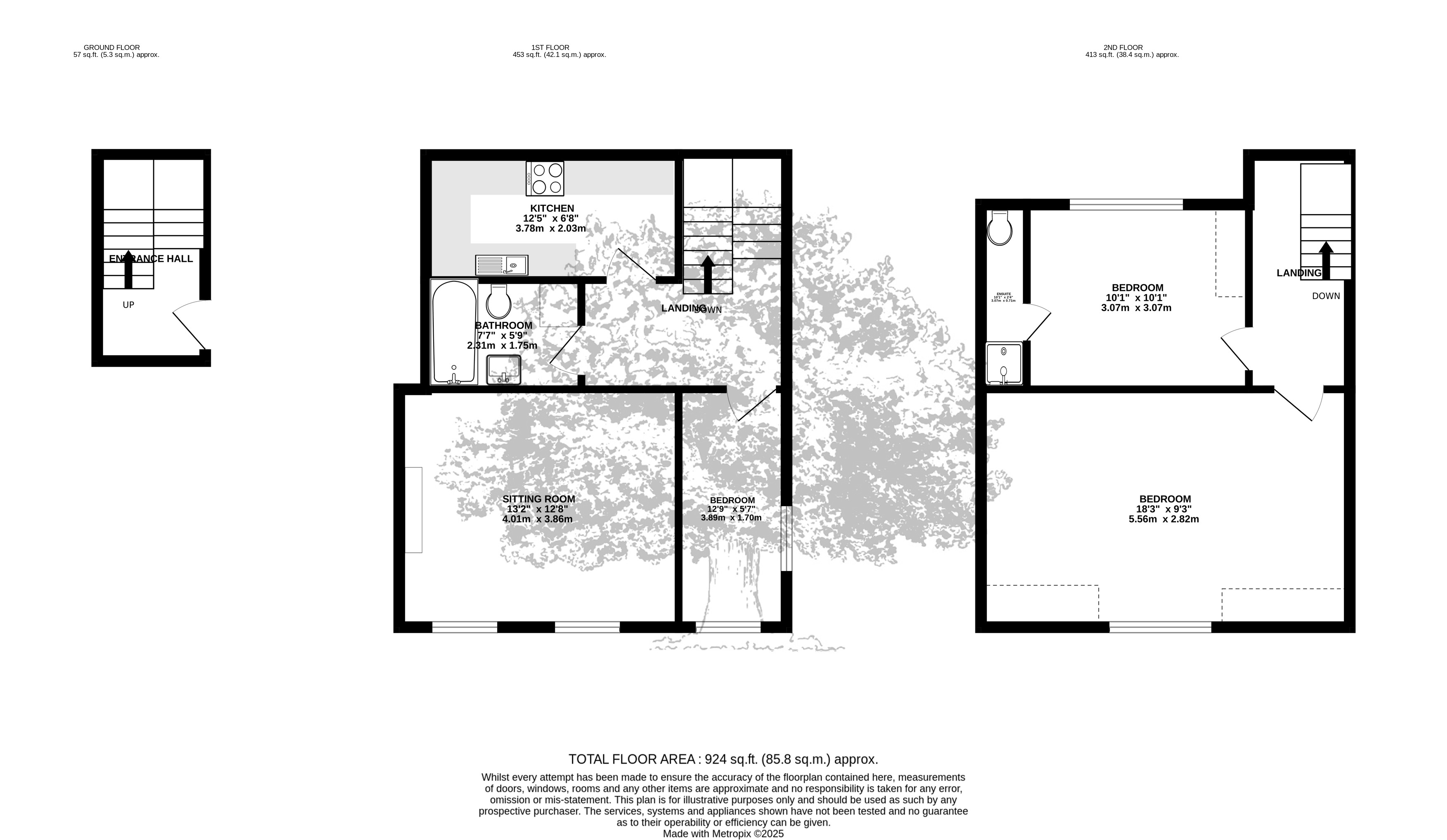 Two double bedrooms and a single bedroom, two bedrooms located on the first floor landing and a double on the top floor.