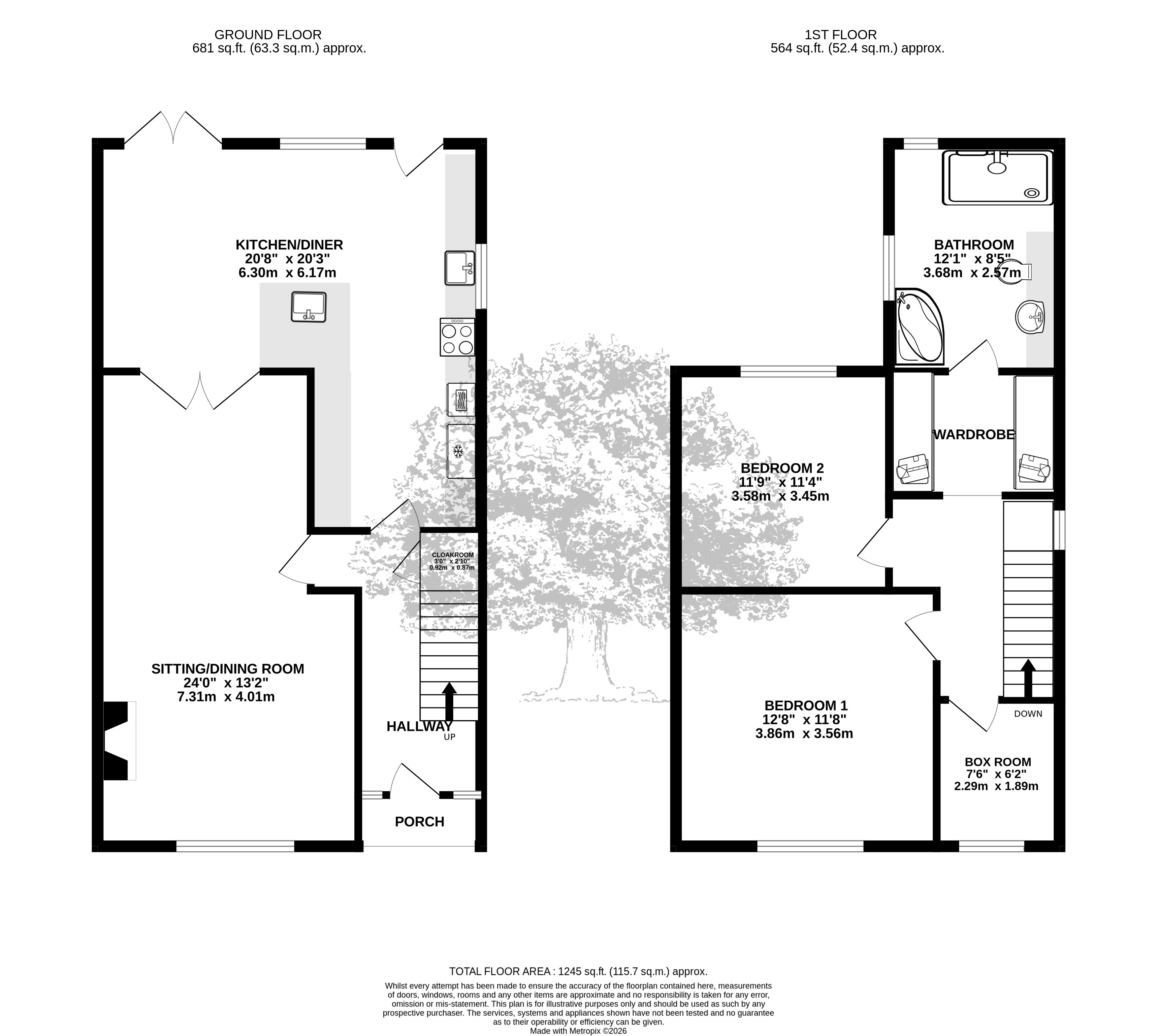 Oil-fired wet underfloor heating throughout the ground floor, with boiler housed in garden shed – Mains water and drains.