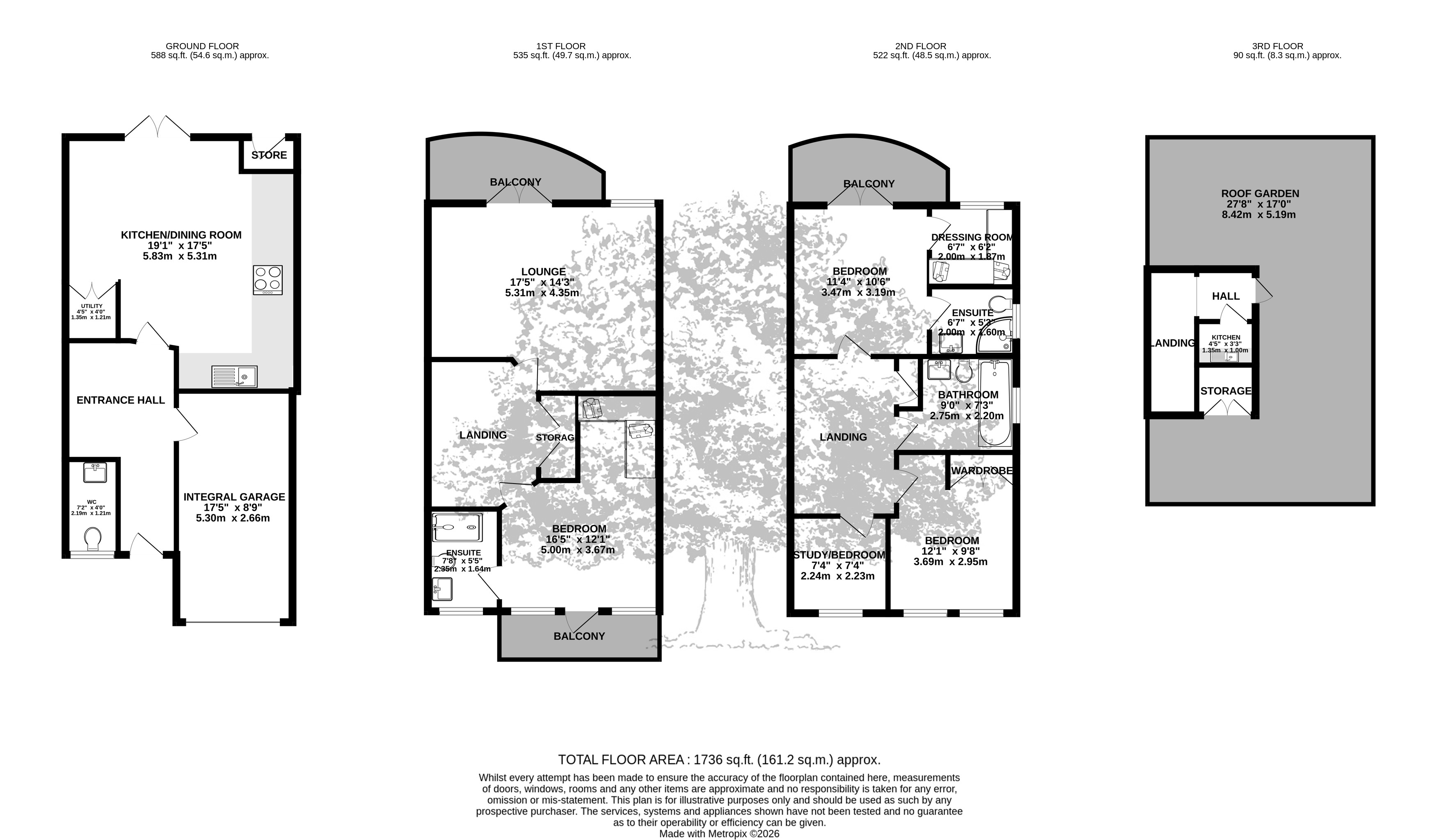 There are 3 double bedrooms all with great wardrobe space, 2 have ensuite shower rooms. The third is next the house bathroom on the second floor along with the study / 4th bedroom.