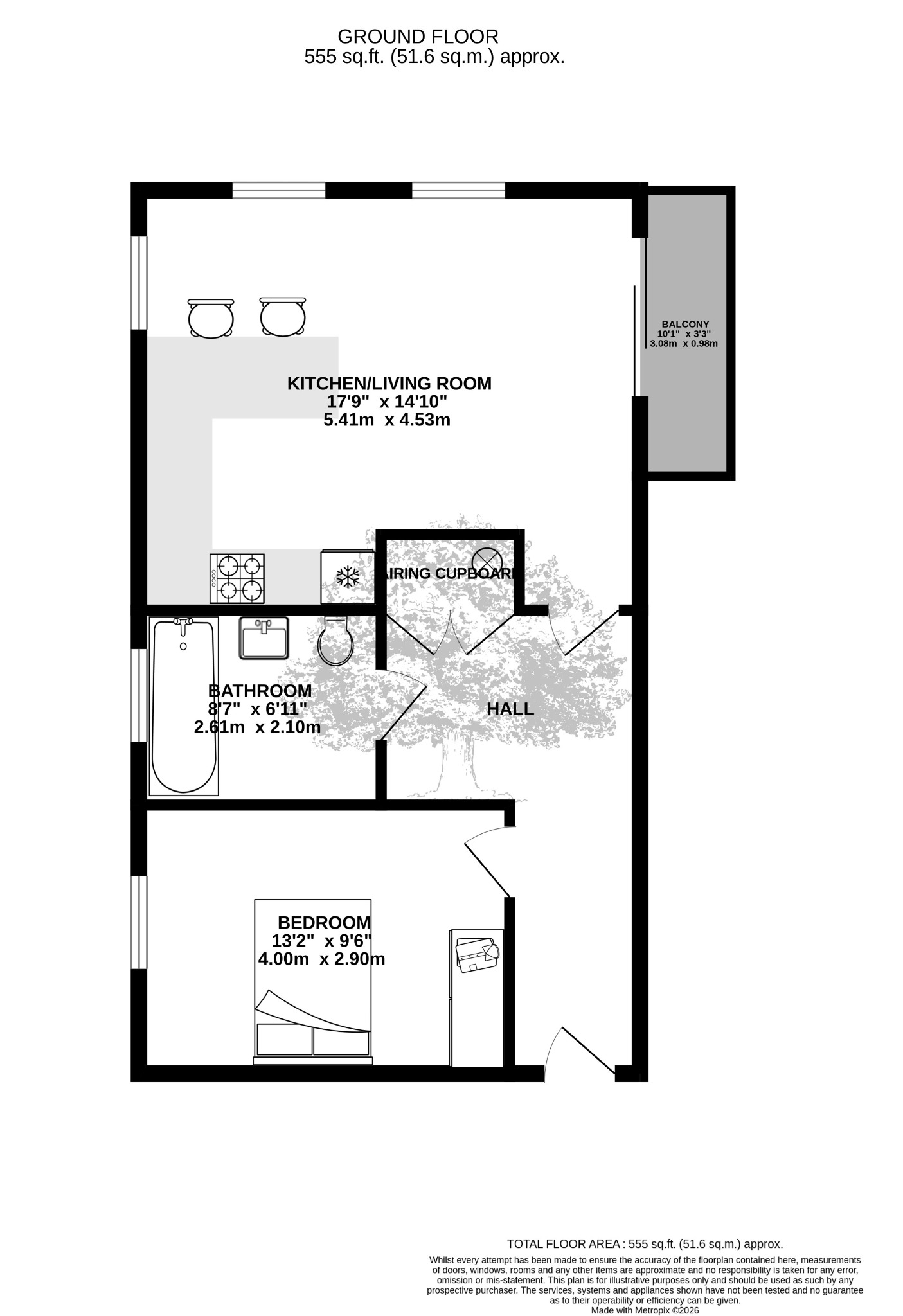The heart of this home is its well-proportioned reception room, seamlessly connecting to a modern, fully fitted kitchen. The design maximises both functionality and style, making it perfect for everyday living and entertaining. One of the standout features is the private, south-facing balcony, which offers a delightful 'treehouse' feel, providing a tranquil outdoor space to relax and enjoy the views over the excellently maintained communal gardens.