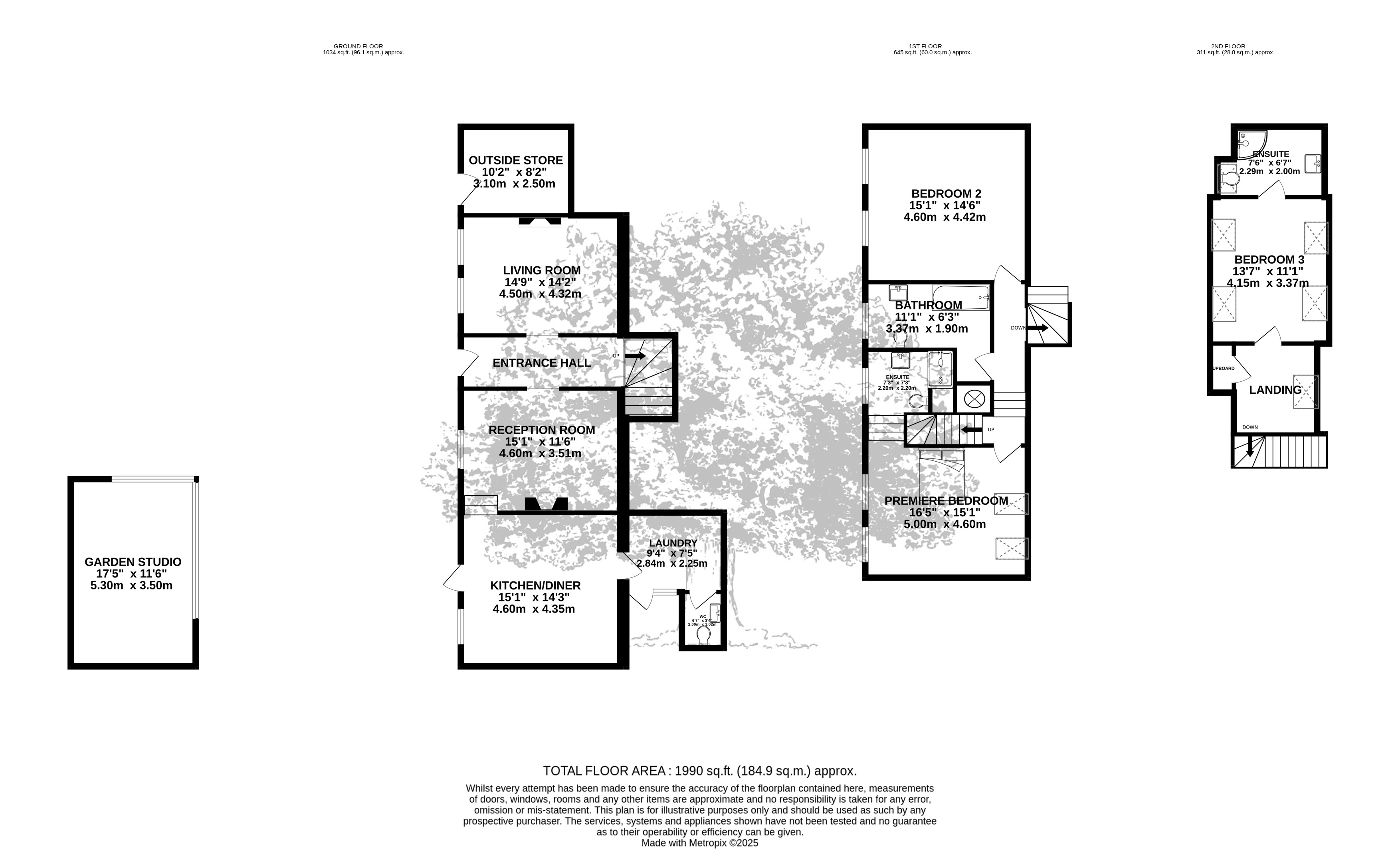 A traditional large granite staircase curls up towards the first floor bedrooms. First floor features the large premiere double bedroom with special vaulted ceiling detail, feature fireplace details, south views over the garden and ensuite shower room. You will also find a second large double bedroom and house bathroom. The third bedroom ensuite is on the top floor with generous landing and wonderful light.