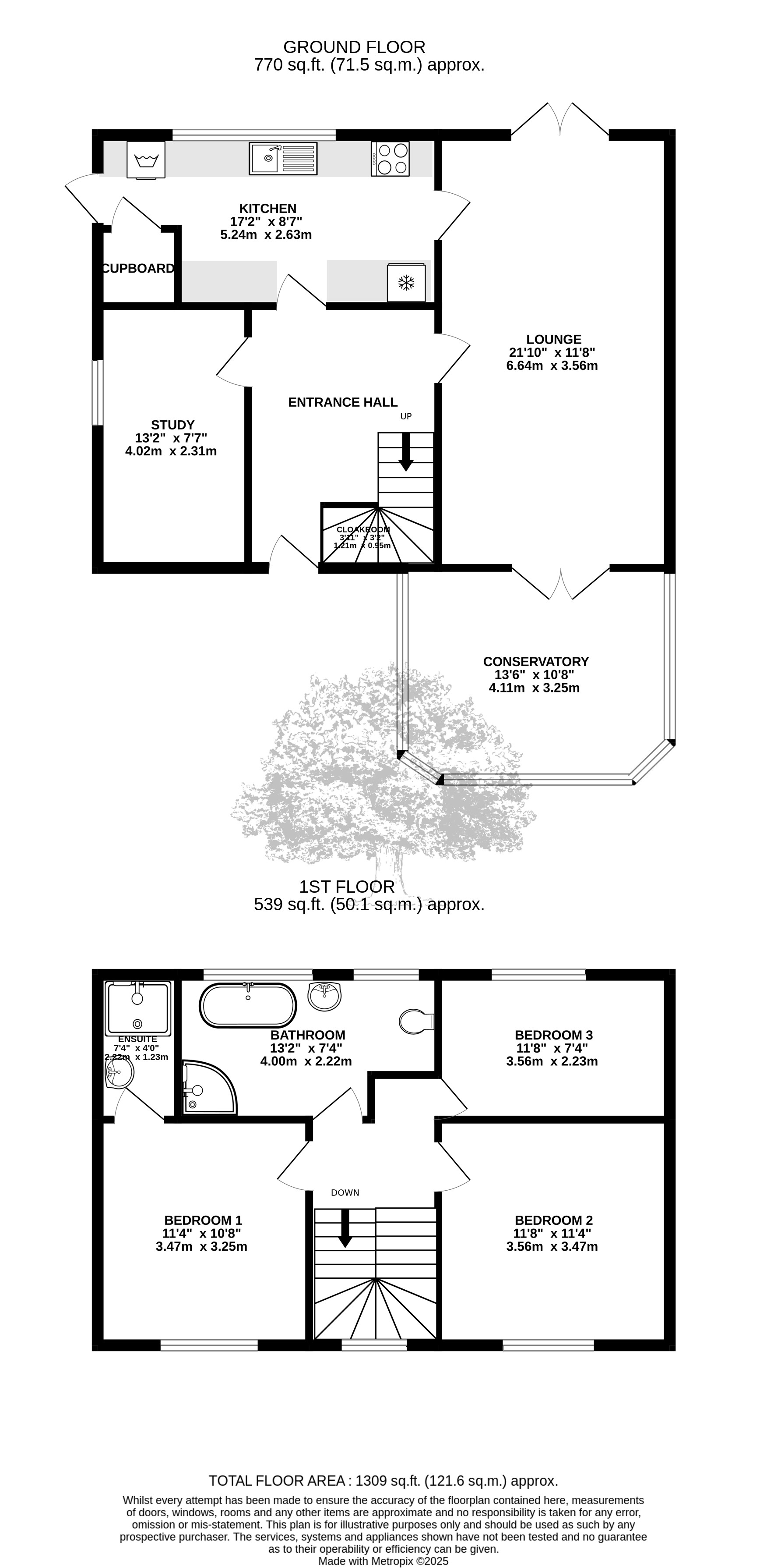 Large lounge that runs the whole depth of the property, double doors to the conservatory at the front and garden at the back. Kitchen at the rear overlooking the garden is fully integrated with electric appliances. Off the entrance hall you will also find the study and under the stairs a cloakroom.