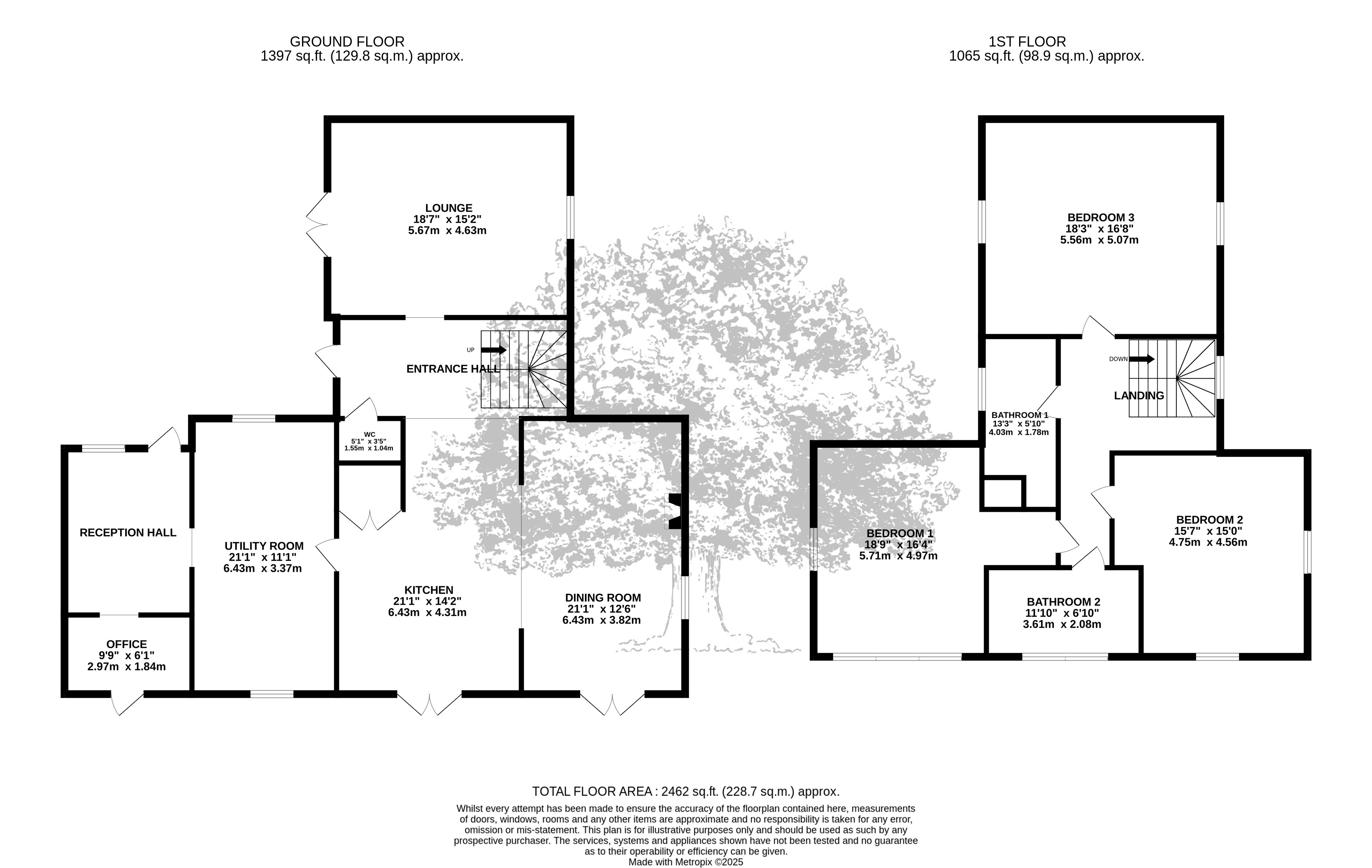 Living room, dining room, cloakroom, study, newly fitted kitchen with island and breakfast bar. Large utility room. Reception hall.