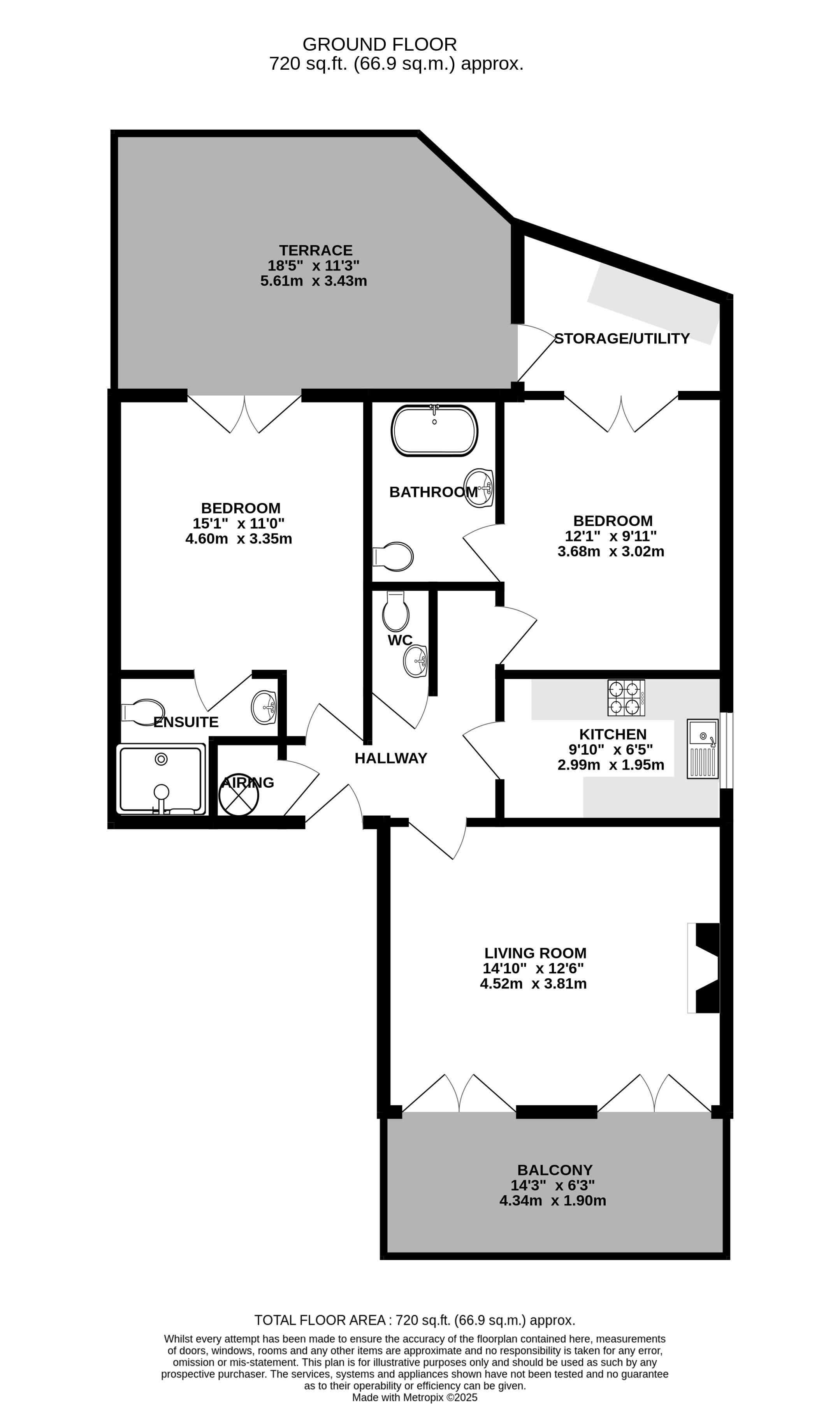 Two double bedrooms, both with plenty of space for wardrobes and the primary benefitting from an ensuite shower room.