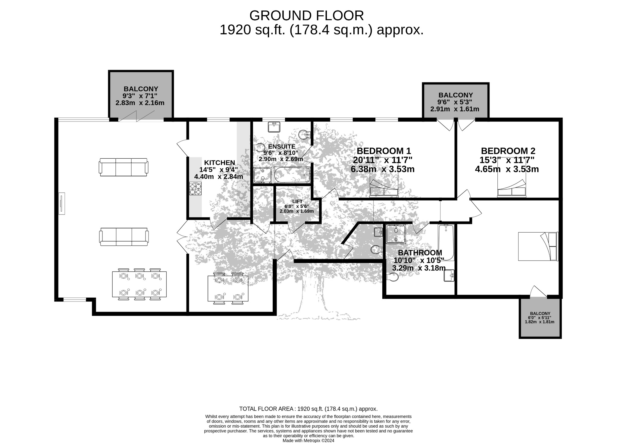 The apartment has a large main bedroom with an en-suite and access to a balcony. The other 2 bedrooms are both large double and have access to their own balconies. These are serviced by a large house bathroom.