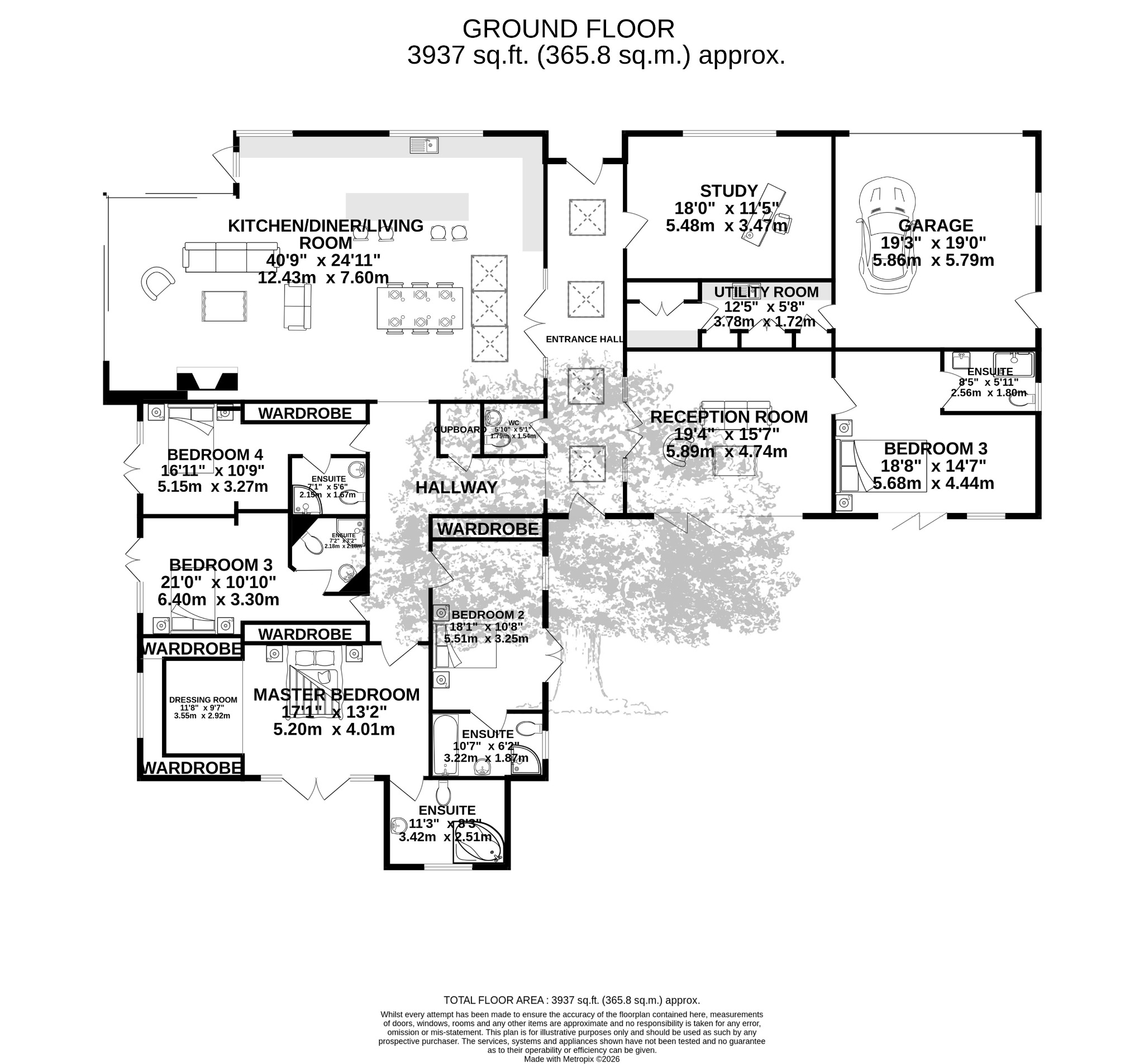 Accommodation comprises five well-appointed bedroom suites, each offering a private and comfortable retreat. This layout provides excellent flexibility, whether for a growing family, guests, or creating dedicated home office spaces. The design ensures privacy and convenience for all occupants.