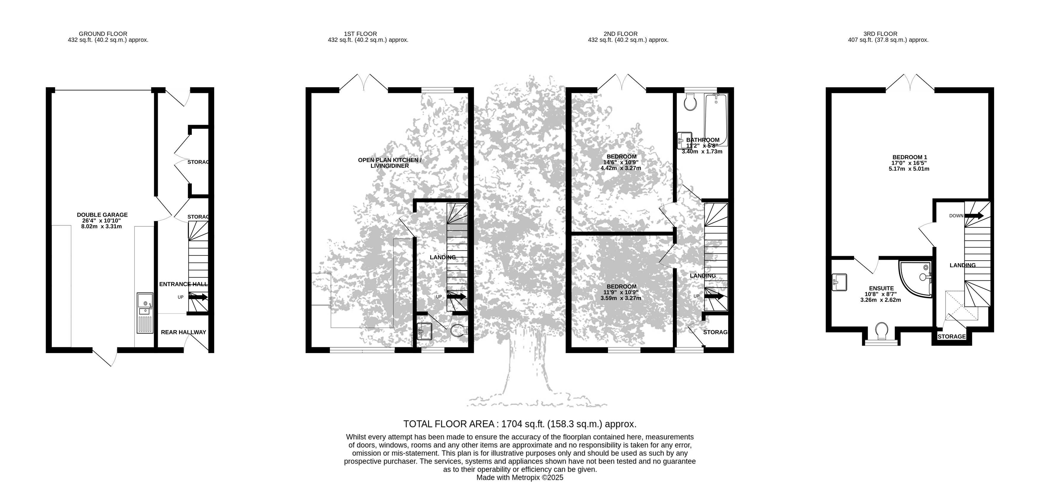 Three good size double bedrooms and two bathrooms over two floors with extremely large main bedroom suite to the whole of the top floor.