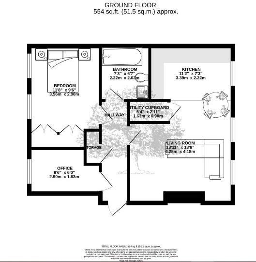 This bright and spacious property features a tastefully designed open-plan living space, seamlessly integrating a modern fully fitted kitchen which is perfect for entertaining. The good size double bedroom is complemented by fitted wardrobes. Furthermore, an additional room provides flexibility as a home office or dressing area, catering to various lifestyle needs.