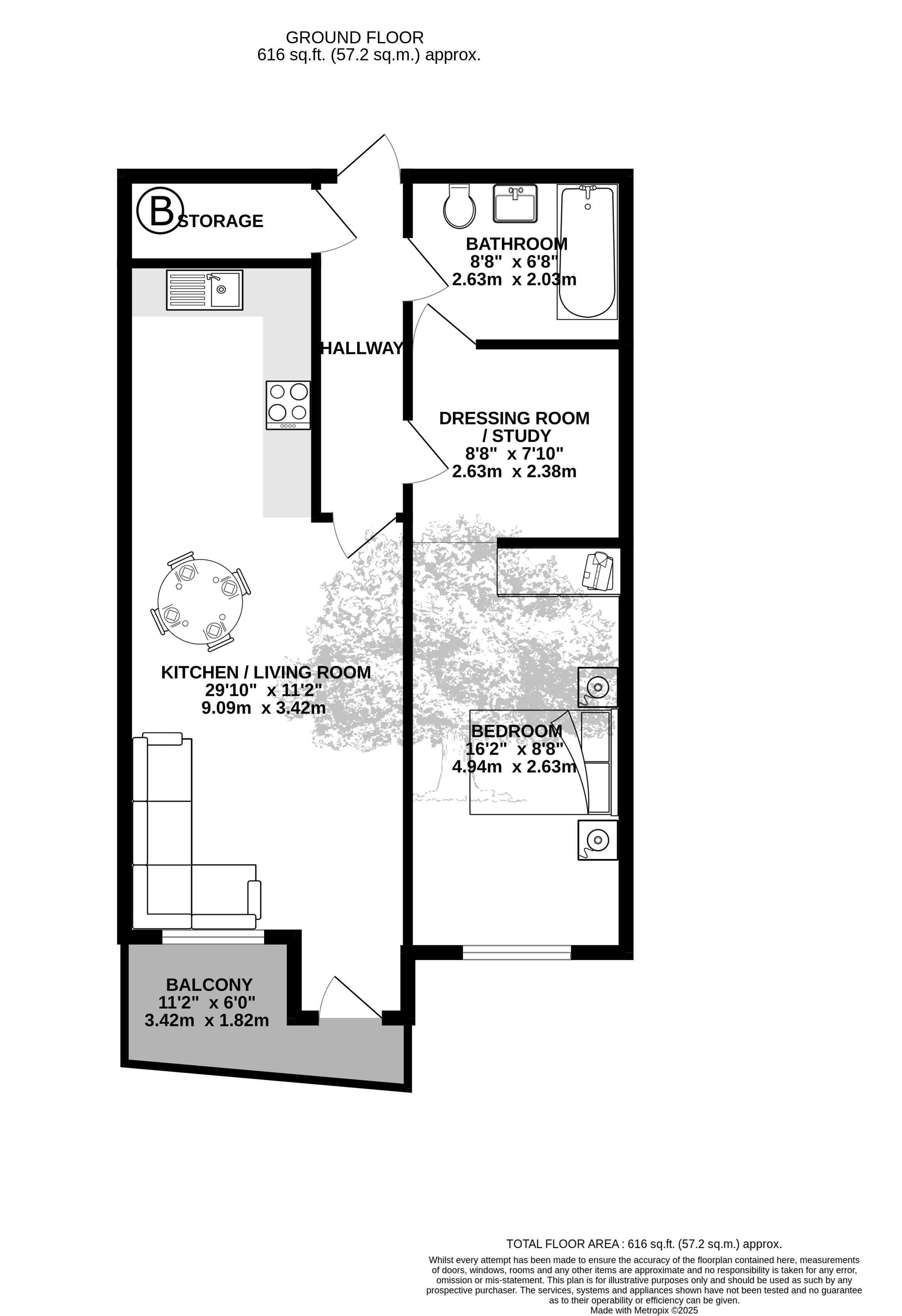 The large double bedroom includes a useful study/dressing area, there is a contemporary tiled bathroom and a generous size internal storage cupboard. Built to a high standard in recent years, the development also benefits from a bike store for residents.