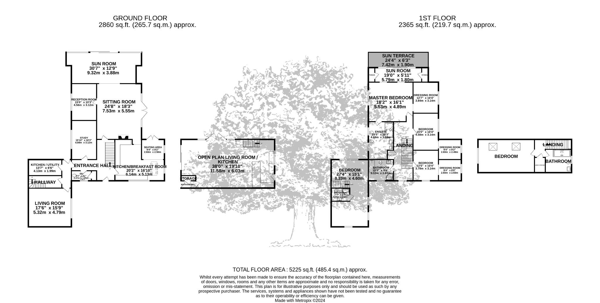 4 very large bedrooms in the main body of the house with an exceptional main suite with dressing room plus sun terrace. 2 of the other bedrooms have their own dressing rooms with the 4th bedroom still a large double.