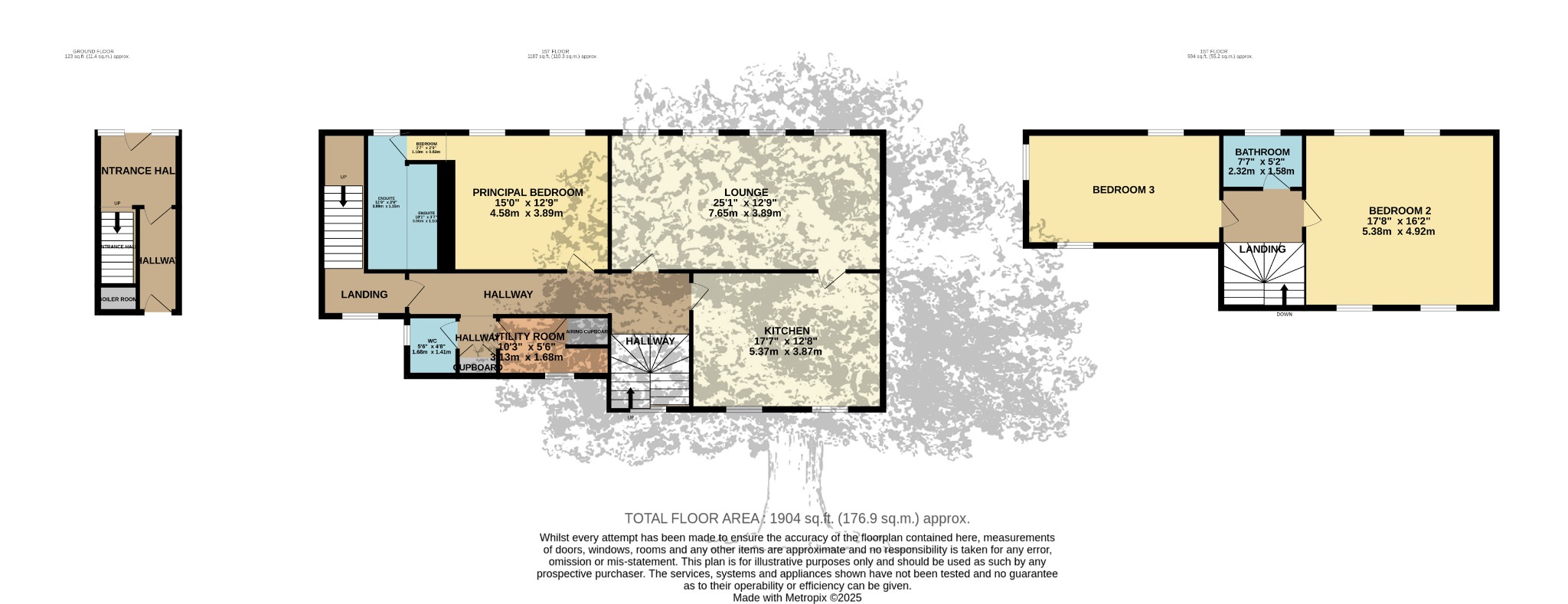 Good size garden downstairs with patio area. Three parking spaces and bike shed.
